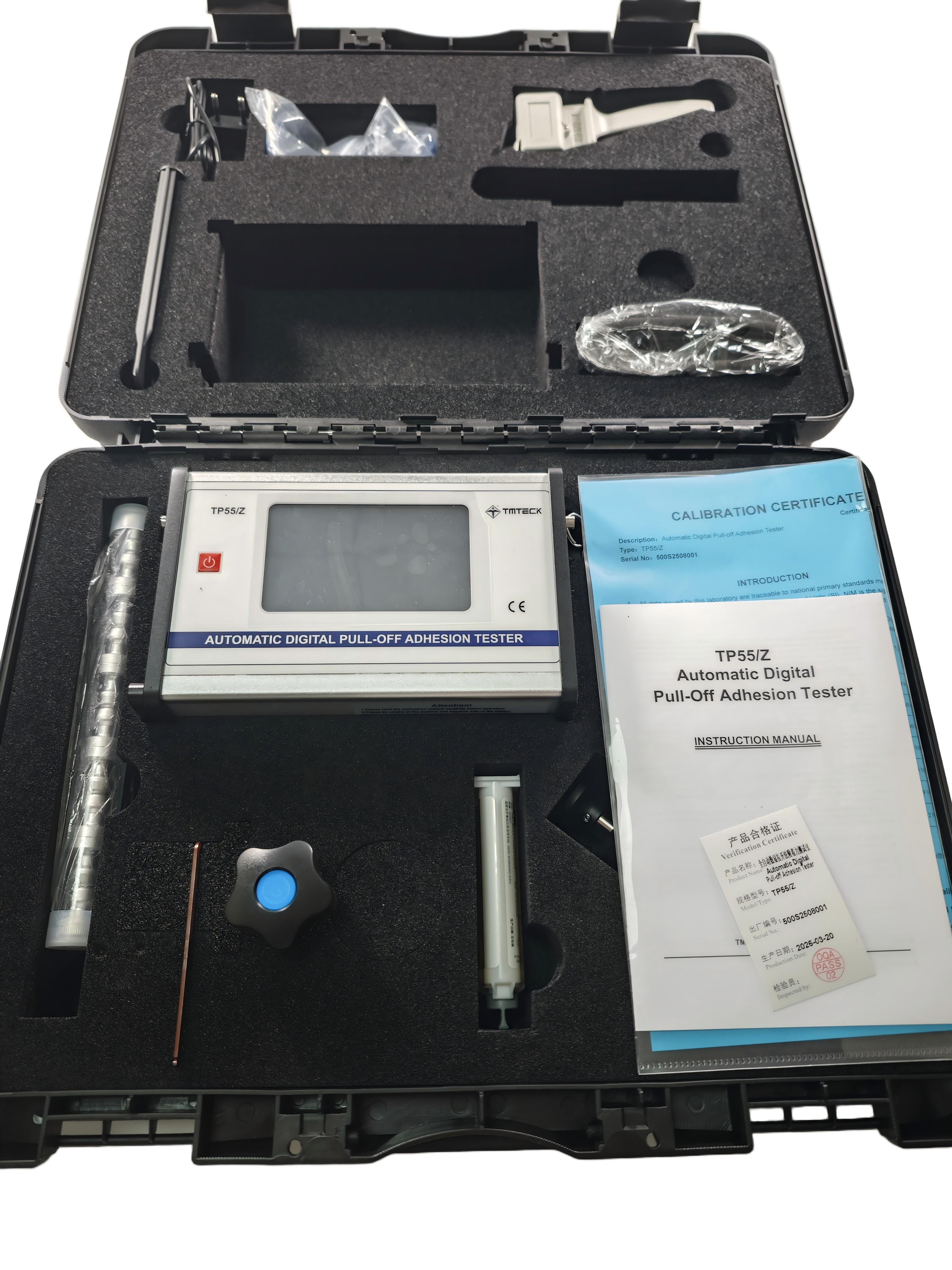 TP55 اختبار الالتصاق الرقمي للانسحاب يتوافق مع ASTM D 4541 ، ASTM D 7234 ، EN 13144 ، ISO 4624 ، ISO 16276 ، إلخ.